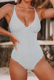 Cet Une-pièce à Col V et à Rayures Noires et Blanches classique est un incontournable pour tout le monde. La silhouette flatteuse attire l'attention sur la poitrine et le haut avec un décolleté en V et des bretelles qui se croisent au dos. Les bonnets rembourrés ajoutent soutien et confort. C'est l'une-pièce rayé parfait pour une journée de détente sans stress à la plage ou à la piscine.